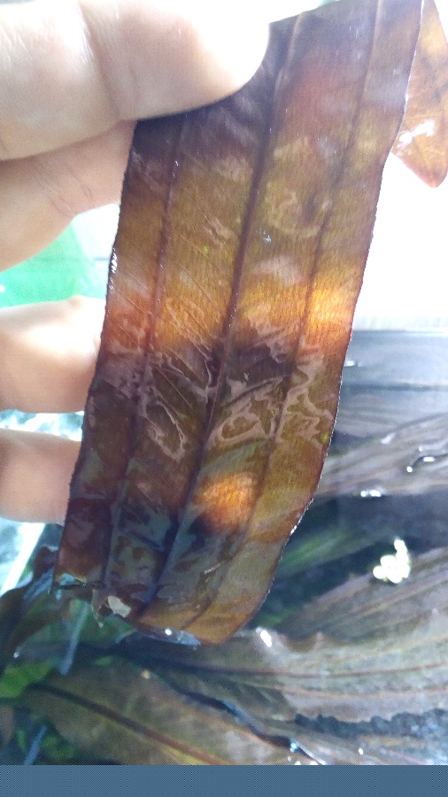 Есть немного обрастаний в виде водорослей и пара листьев погрызли анциструсы. Но на общем фоне этого и не особо видно.
