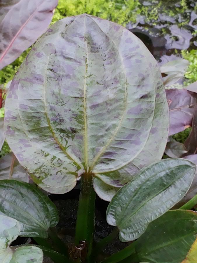 Вашему вниманию предлагается отросток в горшке очень жестколистного довольно интересного гибридного эхинодоруса Echinodorus Hart (сердце). Эхинодорус по жестколистности сравним с опакусами, по крайней мере надводные листья можно использовать в качестве одноразовой тарелки, очень жесткие и размер подходящий. Под водой этот эхинодорус среднего размера с зелеными в крапинку практически круглыми с сердцевидным вырезом листьями, также довольно жесткими.