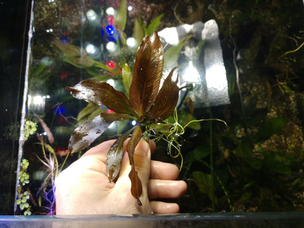 Предлагается Эхинодорус Бемби. Очень живучий и неприхотливый эх.