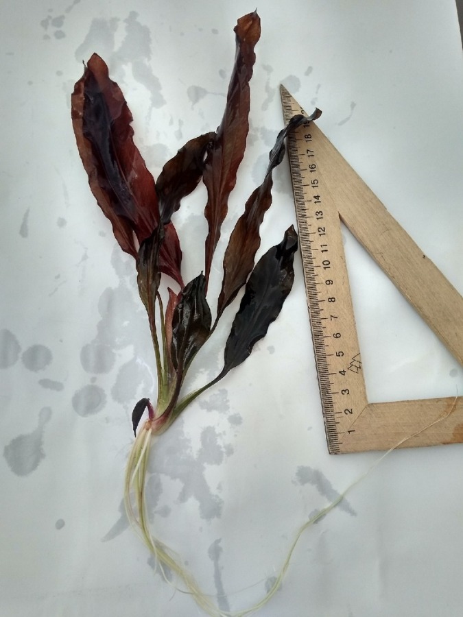 На первый взгляд весьма похож на магрибинца. Отличия — лист более широкий, кончик листа уж не так явно закручен в штопор, волна по краю послабее, ну и в целом куст чуть повыше и мощнее. Листья так же жесткие, черешок зеленого или грязно-зеленого цвета. При правильном выращивании все листья имеют насыщенную темно-свекольную, почти до фиолетового, окраску, однотонную или с жилками более светло-свекольного цвета,непрозрачные, причем окраска листьев нисколько не зависит от температуры и при 30-ти гр. куст выглядит так же. Растет в среднем темпе-один лист в неделю, старые становятся коричневого цвета, но их немного.