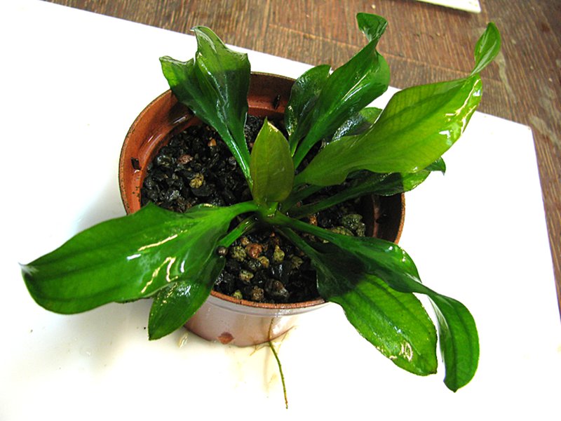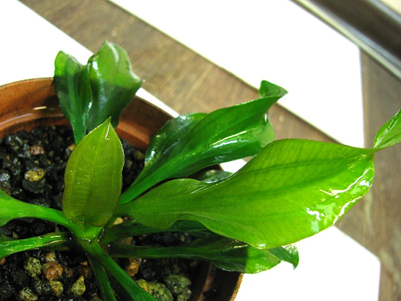 Изумрудно — темно — зеленые ланцетные листья, очень жестколистный эхинодорус не большого размера, очень декоративное и редкое растение.