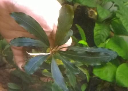- Wаvy Leaf, Melawi. При блице — отросток Bucephalandra sp. Brownie Pixy!