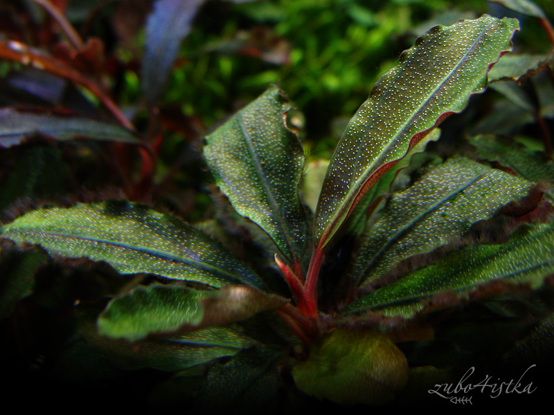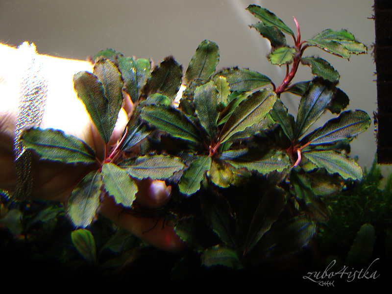 Растет в следующих условиях: свет 0,8 Вт/л, 22-24 °C, ремосмос, Gh — 7, Kh — 1, УДО.