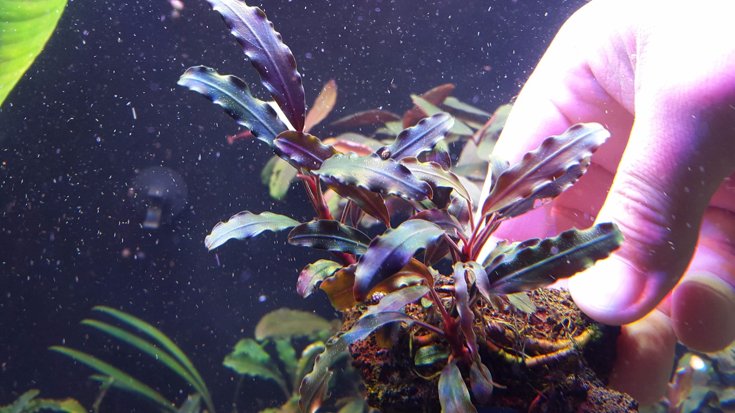 Лот состоит из отростка Bucephalandra sp. Pearl Grey (Doddy). Самый большой отросток будет отделен от куста на фото. Растение выращено в водопроводе, свет LED, СО2, УДО.