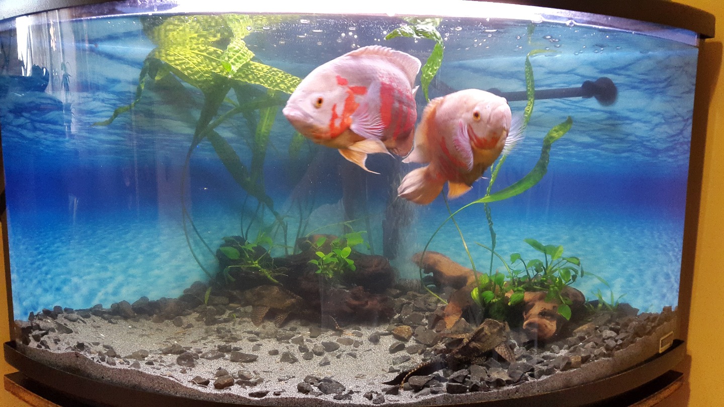 Продам пару Астронотусов — альбиносы 25см+, возраст 3,5 года. Корм мидии и креветки.