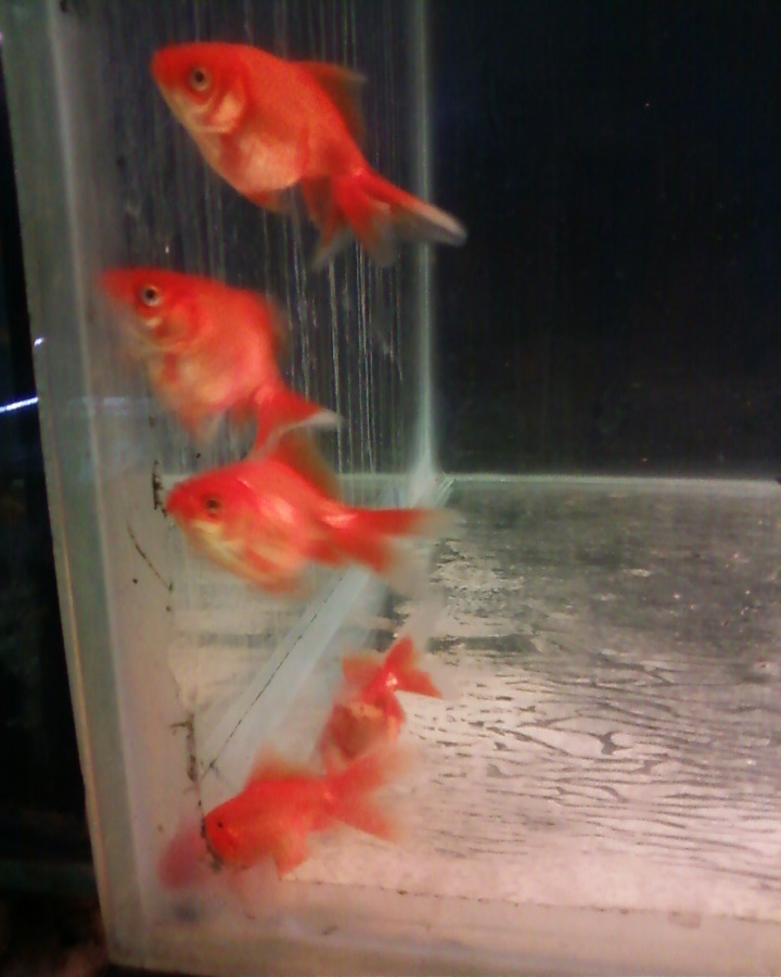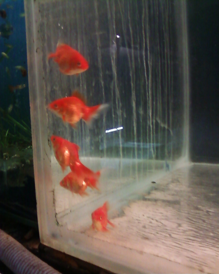 очень красивые и ярко окрашенная пятерка шустрых вуалехвостов, размер 5-6см