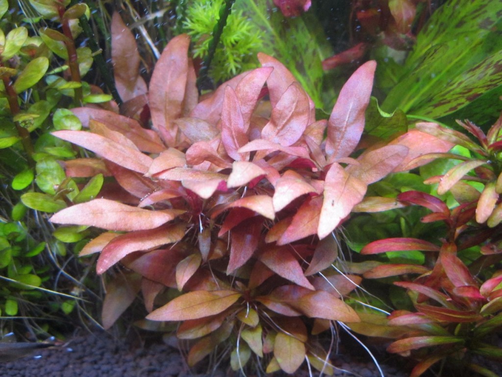Альтернантера рейнеки «Мини» — это миниатюрная версия хорошо известной Альтернантеры. Характеризуется компактностью и медленным темпом роста. Частое черенкование приветствуется. Путем частой обрезки вы можете создать плотный красно-фиолетовый ковер, не превышающий 5-10 см. Хорошее освещение (не менее 0,5 Вт/л) и подача СО2 (6-14 мг/л) улучшает рост и внешний вид растений. Хорошо подходит как для маленьких аквариумов, так и для больших объемов в качестве почвопокровных растений.