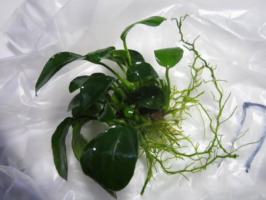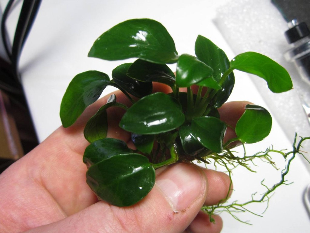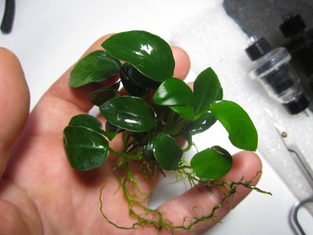 Селекционная форма. Мутация, появившаяся в результате отбора в Сингапуре. Ещё более компактный вариант Анубиаса нана. Имеет прекрасные округлые, темно-зеленые листья на малых черешках. Высота 3-5 см. Ширина 5-10 см.