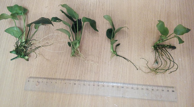 4 куста 5х10 см молодых побегов Анубиас Нана (Anubias barteri var Nana).