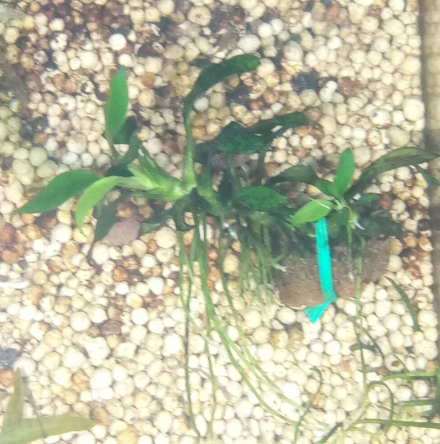 Взрослый кустик анубиаса панголино с деткой. Размер кустика — чуть больше спичечного коробка.
