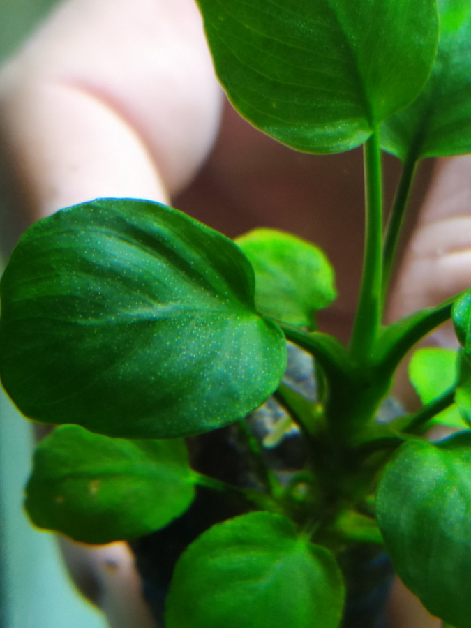 Красивейший,с серебристым крапом как у буцек:Anubias Barteri nana var.Round leaf !! На фото сам лот.