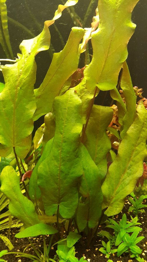 У меня растение обычно достигает высоты 40-60 см. Хорошо растет в воде средней жесткости или мягкой, при нейтральном значении pH и температуре 22-30С.