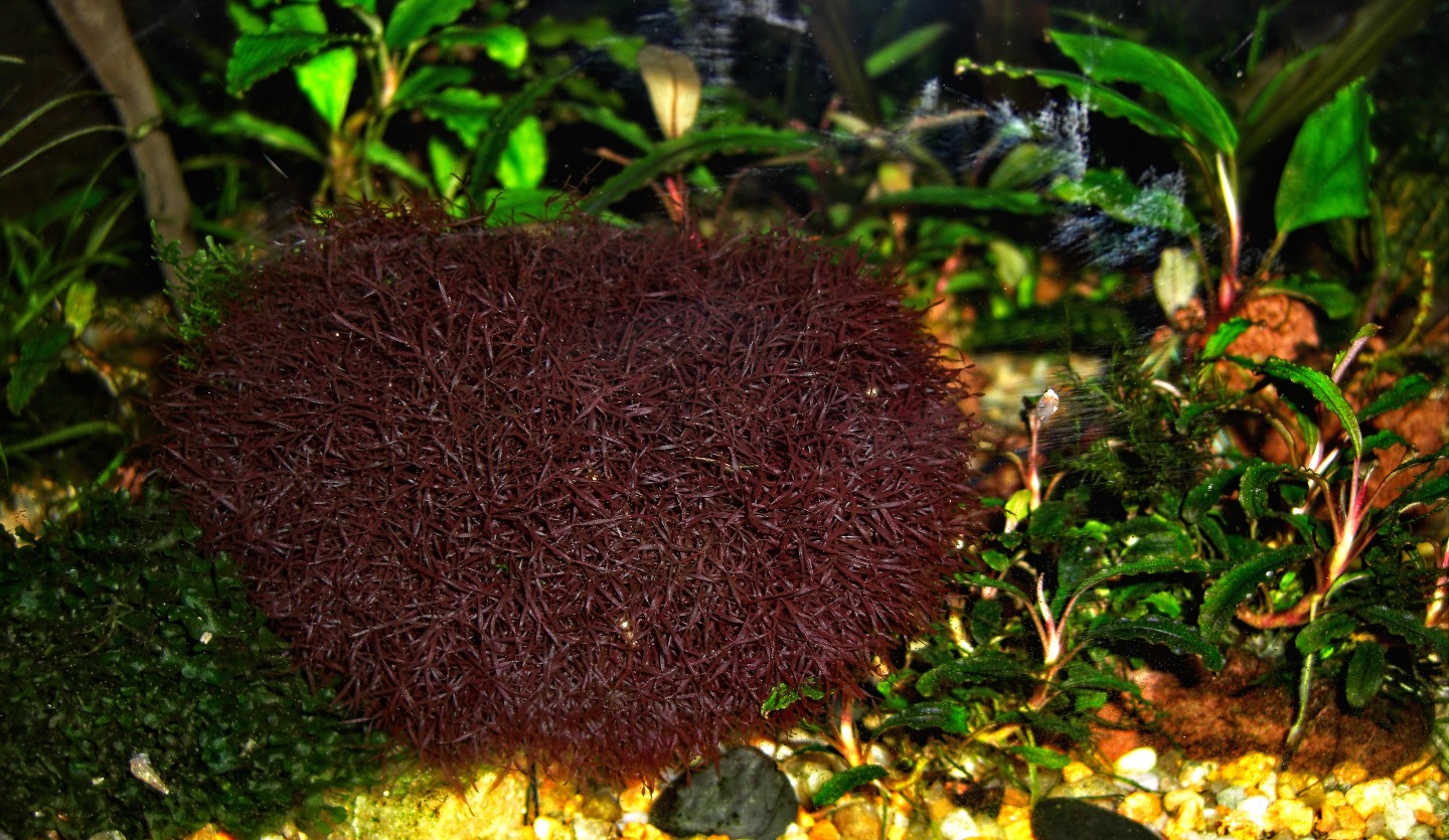 Caloglossa cf. Beccarii — «благородная» водоросль, которая поражает своим внешним видом. Имеет несколько оттенков окраски, она может быть коричневого, темно-фиолетового, буро-красного цвета. В природе Caloglossa cf. Beccarii встречается в основном в теплых регионах, по берегам и в устьях рек, где растет на мангровых корягах. Также Caloglossa cf. Beccarii можно встретить и в солоноватых водах некоторых озер и даже в море. А морские красные водоросли являются ее ближайшими родственниками. Caloglossa cf. Beccarii культивируется в аквариуме относительно недавно. В культуре она не требовательна. Освещение среднее, параметры воды особого значения не имеют, т.к. в природе она обитает в совершенно разных по составу водах. Температура воды должна быть относительно высокой, не ниже 22 градусов. Легко прирастает к камням и корягам.