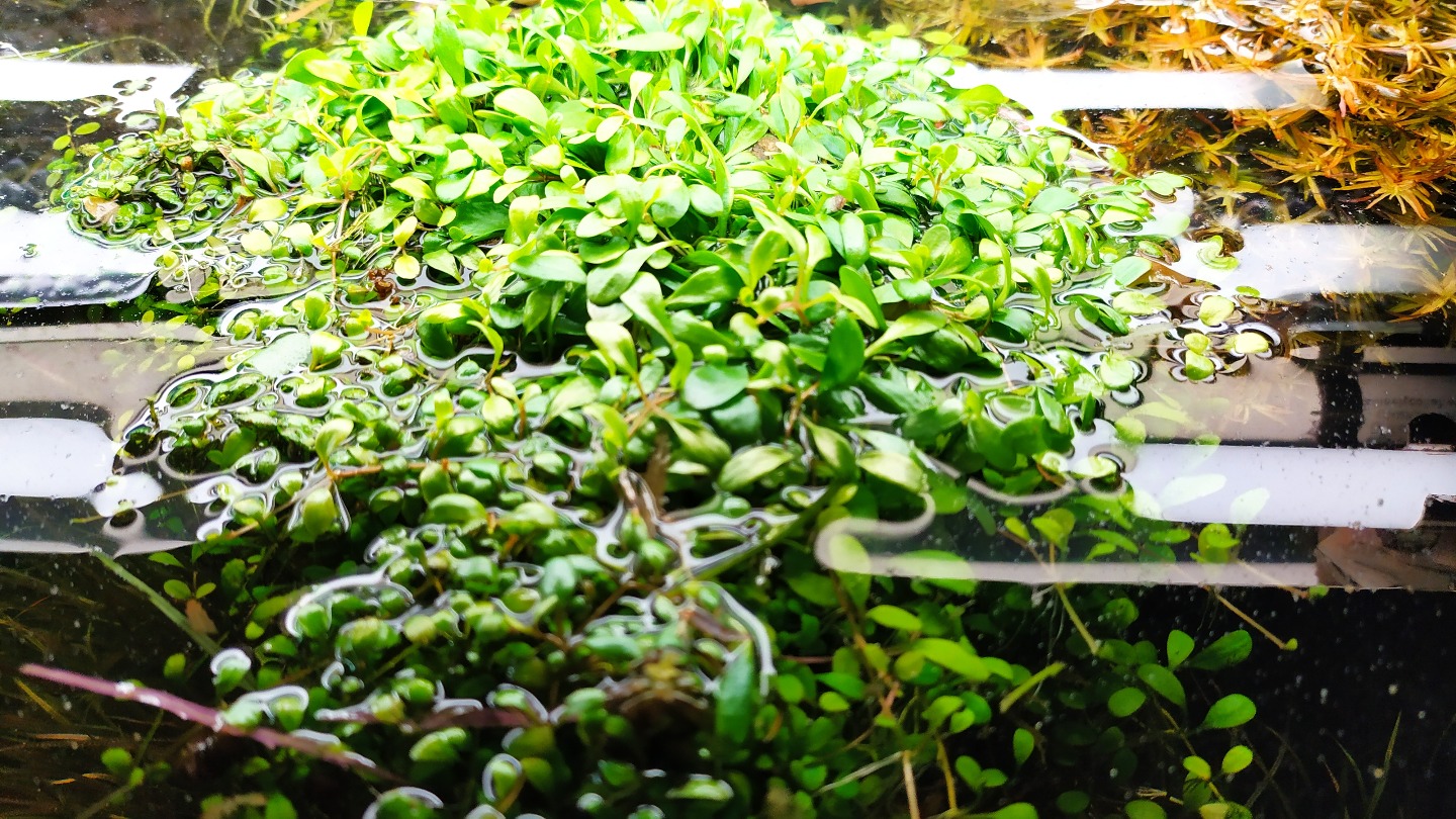 Глоссостигма (Glossostigma elatinoides)грунтопокривна рослина переднього плану, об’ємом 50мл, з плавучої колонії на фото.