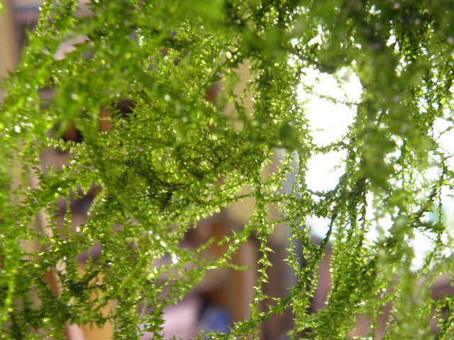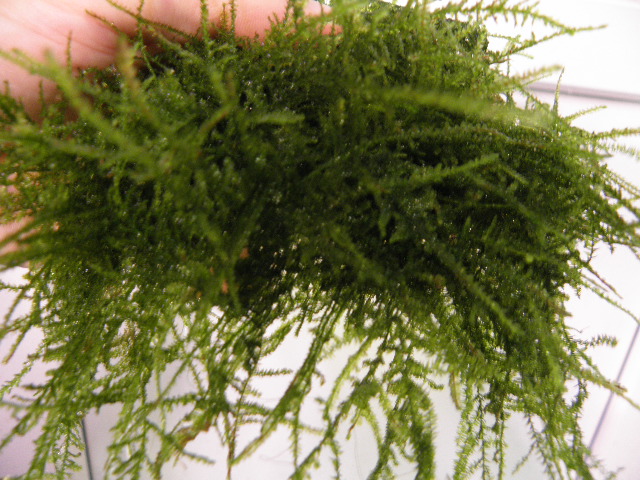 Представляю Вам большущую порцию мха Crescend Moss — Drepanocladus aduncus. И порцию меньше Яванского мха. Эти два мха самые неприхотливые и самые быстрые по скорости роста. У меня росли в креветочнике без СО2 и почти без УДО. Не исключаю пару волосин нитчатки, где креветки не достали.