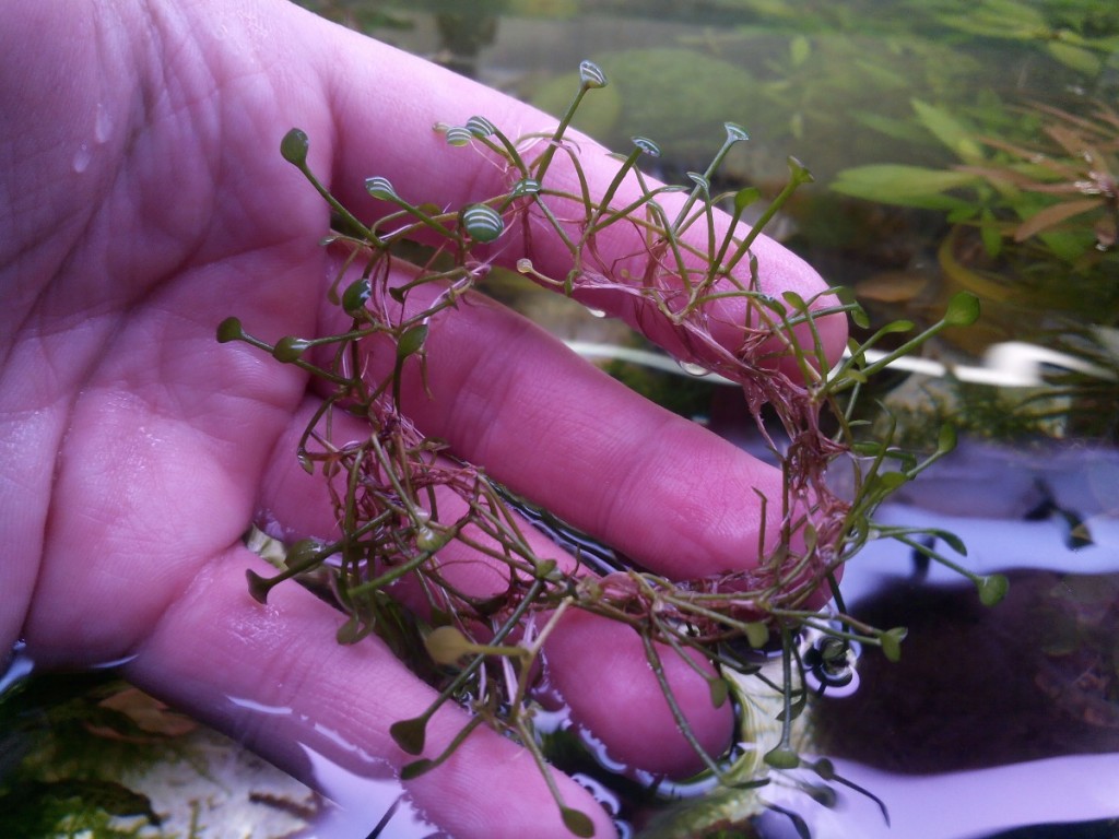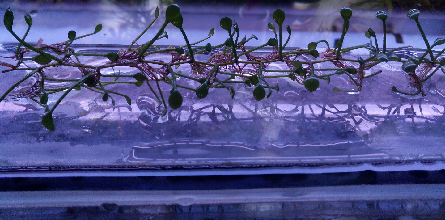 Marsilea crenata — порция на фото. Самая миниатюрная из семейства марсилиевых. Нежные листья не более 5-7мм. Создает великолепный коврик высотой не более 3см. Предпочитает яркий свет.