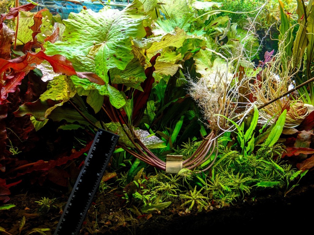 Кілька кущиків криптокорин трьох видів: жовта, понтедерелистна, Вендта тропіка, кількість на фото.
