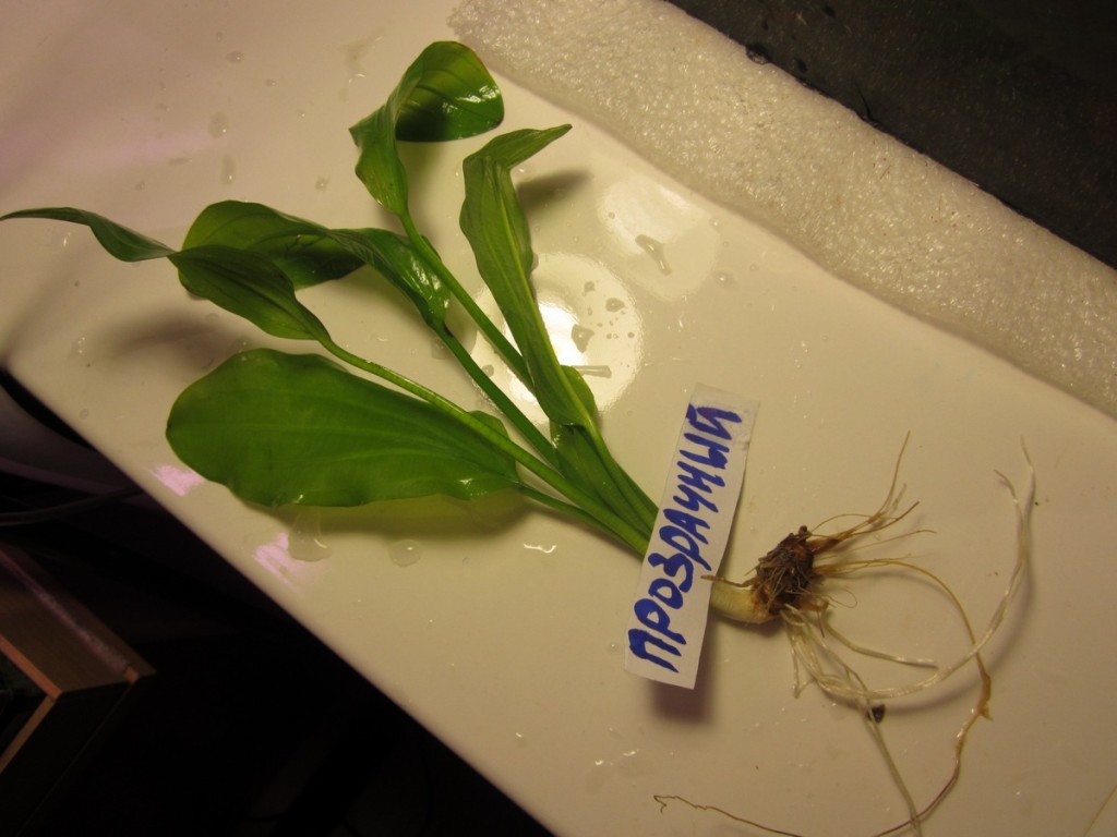 Эхинодорус прозрачный — описан в 1974 г. К. Ра-таем. Распространен по водоемам, боло-тистым местам Парагвая, а также в не-которых районах Аргентины и на юге Бразилии. Растение 20—30 см высотой. Подводные листья с короткими черешками, выступающими жилками, от овальных до ланцетных и обычно покрыты красно-бурыми пятнами. Типичные подводные листья 9—11 см длины и 3—5 см ширины, с черешками чуть длиннее пластин, эллиптические, видно до 5 жилок. Цветонос прямостоячий, 60—75 см длины, у основания соцветия разветвлен. Цветки собраны в многозонтичные простые соцветия, цветоножки 2,5—5 см длины; тычинок 24— 28.