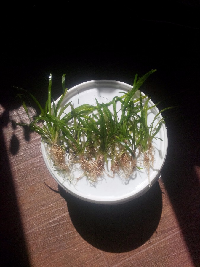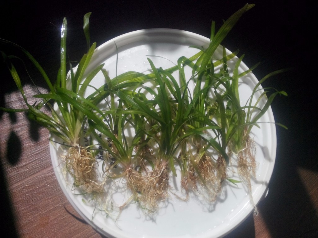 Росло в тени под эхинодорусами, немного вытянулось из-за нехватки света. насчитал 16 кустиков плюс мелкие отростки.