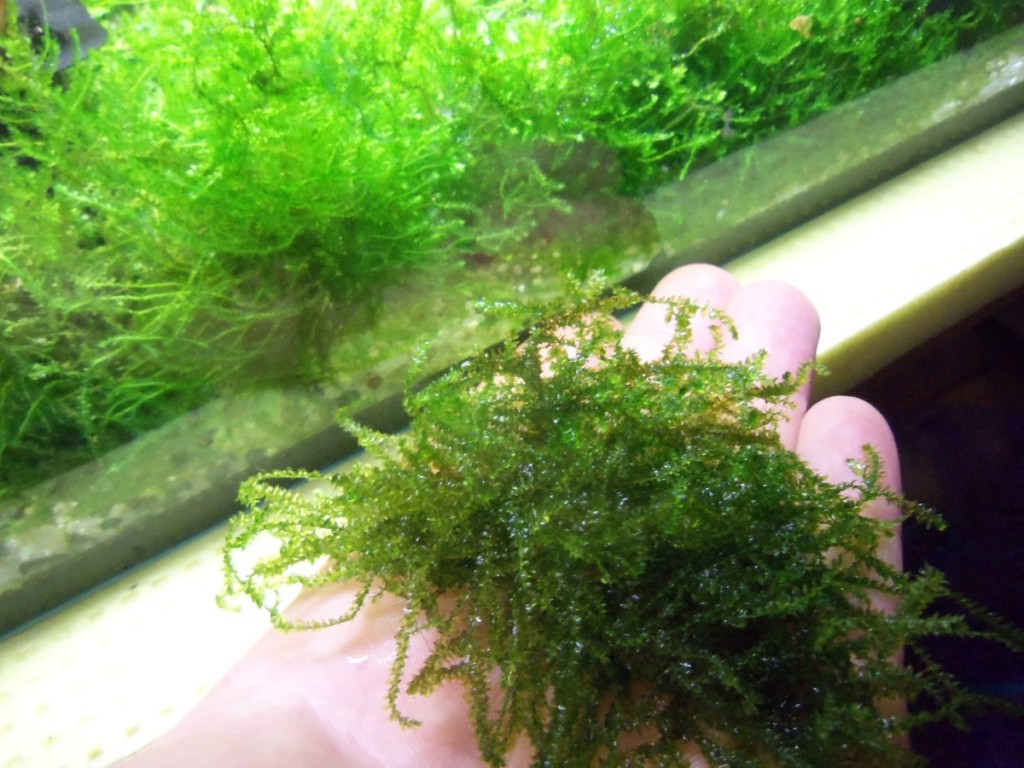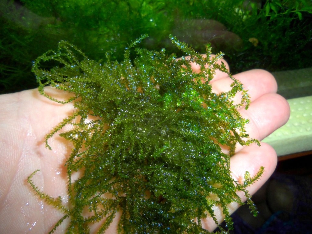 (Все фото мои) Порция в ладони. Этот же мох, на заднем плане в аквариуме.