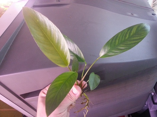 Предлагаю, Вашему, вниманию — Anubias Afzelii. У этого вида молодой лист имеет не зеленую, а красно-коричневую окраску. Растение одинаково хорошо растет как в теплице так и в аквариуме.