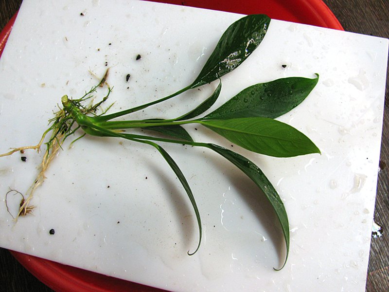 Anubias glabra не большой и очень симпатичный анубиас с очень характерными листочками. Со временем появляется много точек роста и кустик образует живописную клумбу.