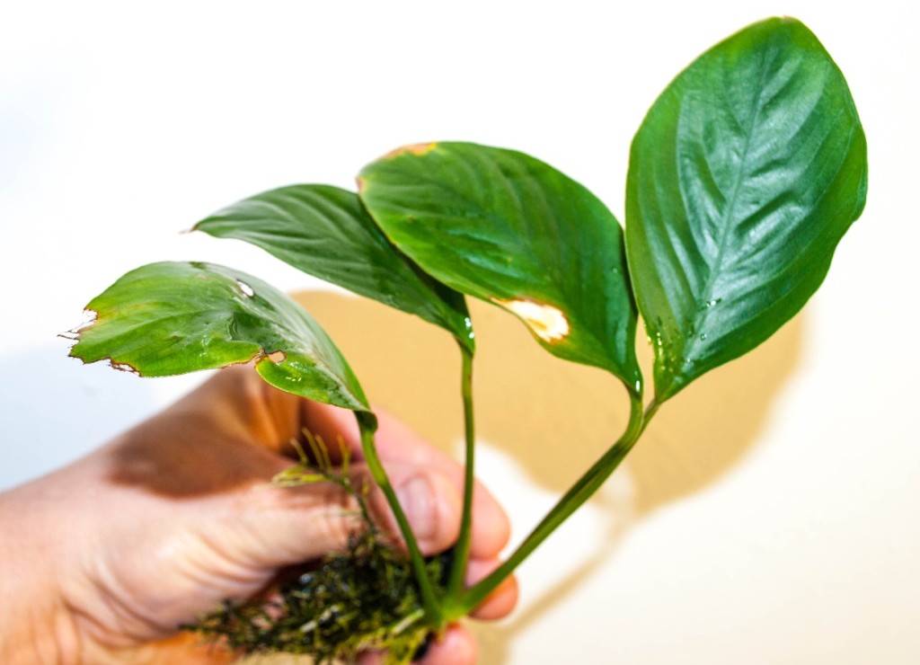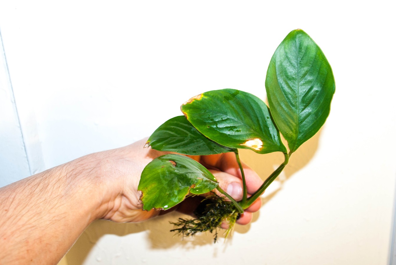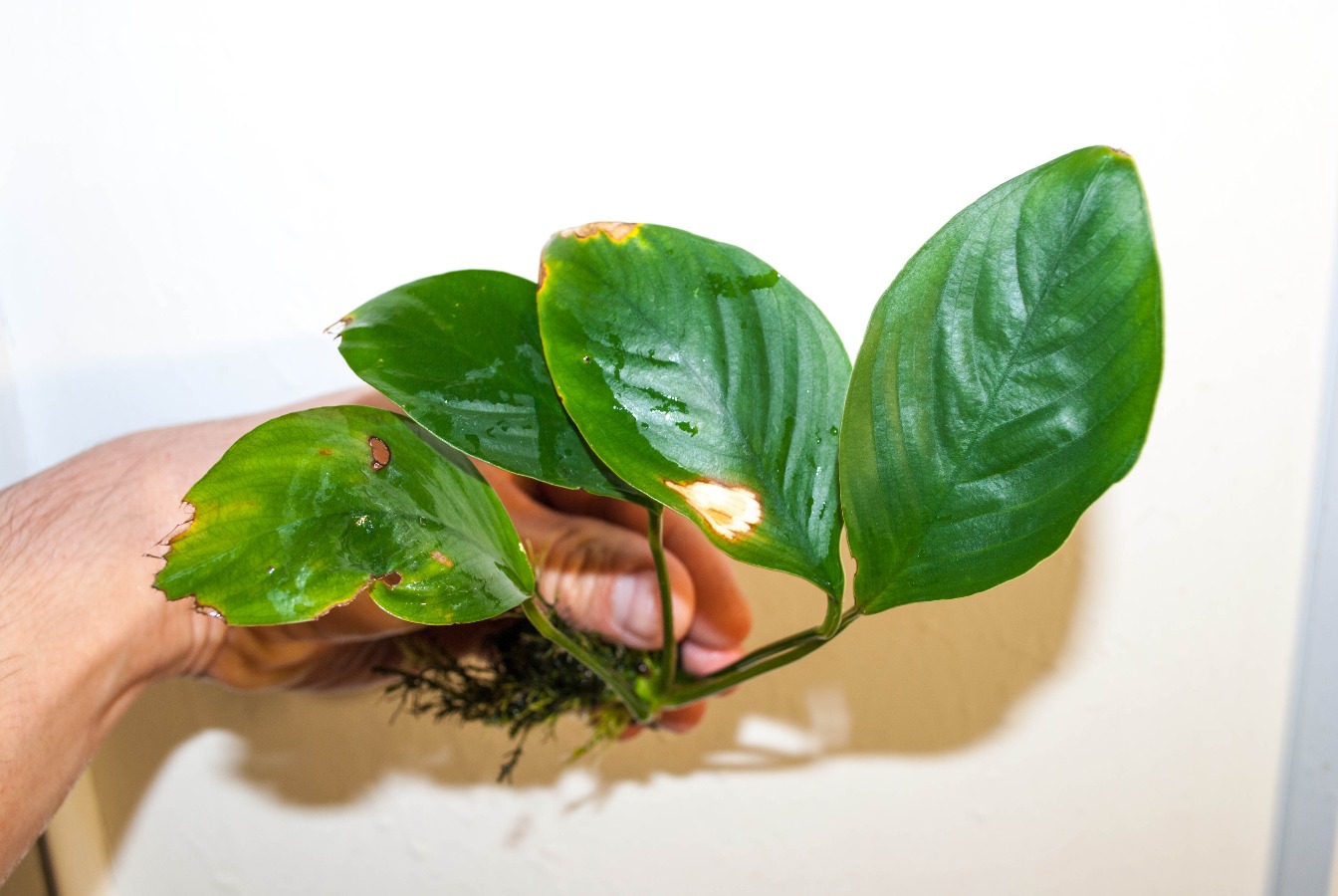 Представляю Anubias sp. «Gabon». К сожелению растение расло очень блиско ламп и немного пострадало, но само растение очень крепкое и сильное!