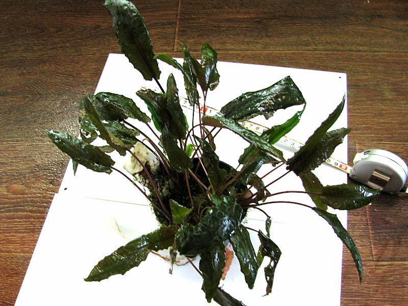 Не высокая, не сложная в содержании криптокорина с широким, темным листом. На хорошо развитых кустах листья во вятинах и выпуклостях, очень фактурные.