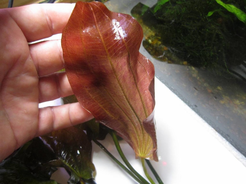 Echinodorus Roter Leopard Dsch N10) — великолепный гибрид, который выделяется среди других красными, удлиненными листьями с едва заметным крапом. Молодые листья полупрозрачные, окрашены более ярко. Растение очень выносливо, может расти и в полутени, но тогда теряет яркость окраски.