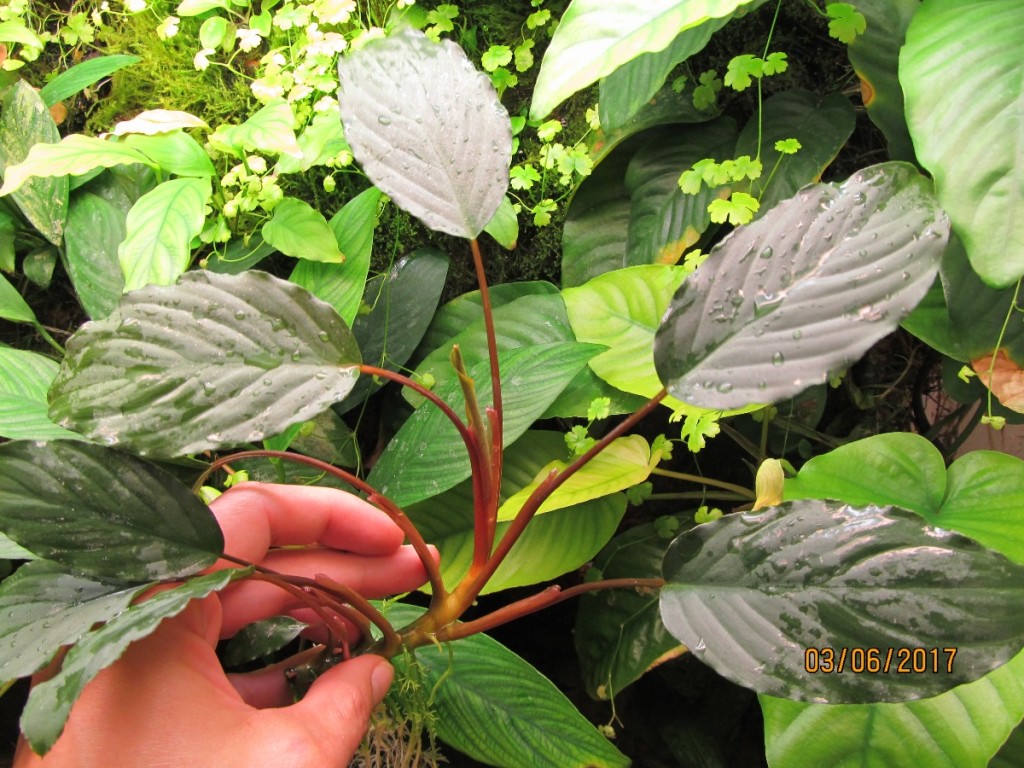 Очень красивое растение. Росло в тепличке, под водой содержать не пробовал, но думаю будет и там расти. В содержании не требовательное, растет быстрее анубиасов.