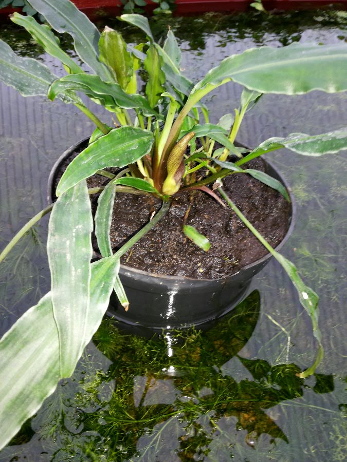 Это растение семейства ароидных родина о.Шри-Ланка. Отличительной чертой ее есть оригинальный волнистый лист с белой каемочкой по краю. Лагенандра Твайтеза может расти как в воде, так и над водой, развивается растение под водой медленней. В принципе выращивание несложное, но требуется некоторое терпение. Представленное растение выращенно надводно.