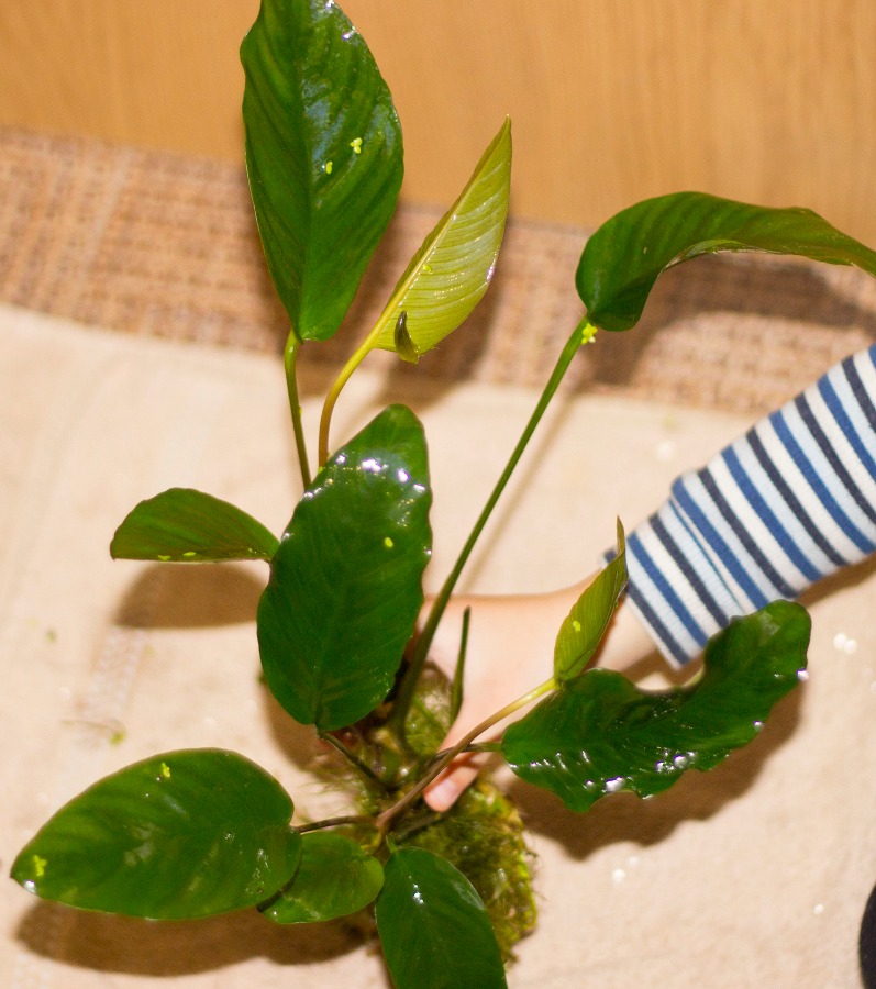 Как и все анубы прост в содержании , живет в водопроводной воде.