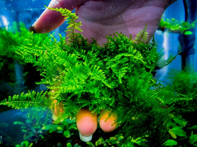 Triangle Moss — Cratoneuron filicinum на кусочке лавы.