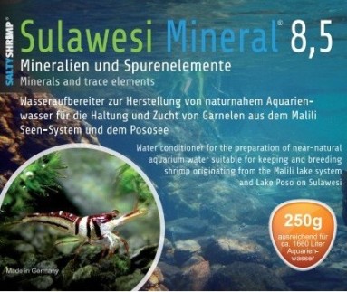 Sulawesi Mineral 8.5 містить усі важливі мінерали та мікроелементи, необхідні креветкам з цієї місцевості. Дана мінеральна сіль регенерує біологічні фільтраційні властивості грунту. Підтримує співвідношення карбонатної та загальної жорсткості води у межах значень: KH/°dH = 0,78/1,0.