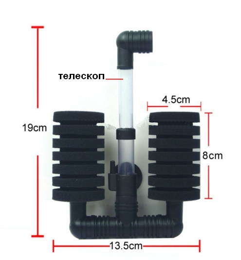 Фильтр работает по принципу аэролифтинга-вода циркулирует благодаря напору воздуха из компрессора!