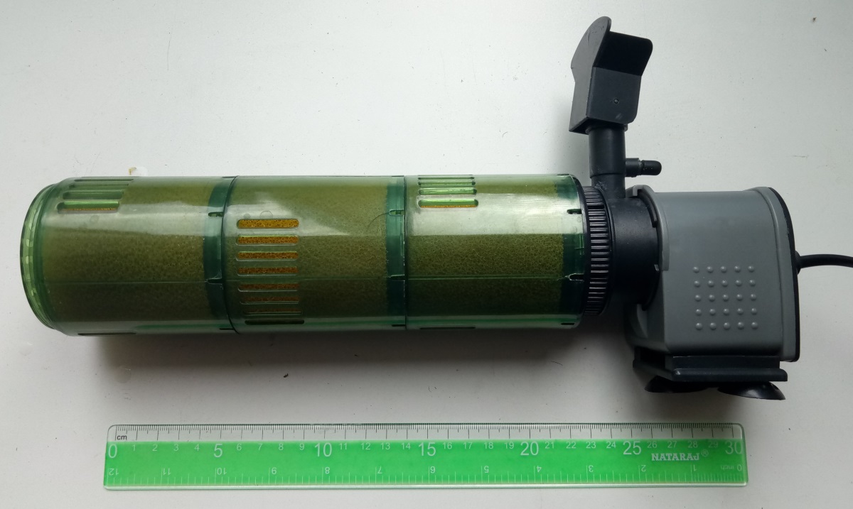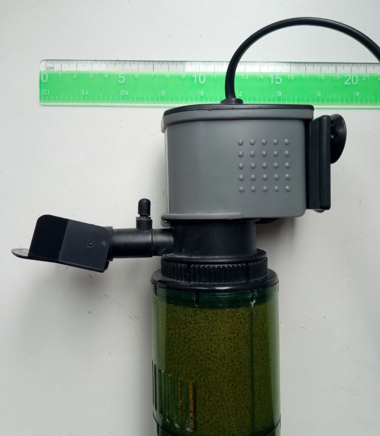 Внутренний фильтр для большого аквариума ViaAqua VA-2219F — на 840 л/ч. Вполне так дует хорошо даже в аквариуме на 300 с лишним литров. Регулировки потока нет.
