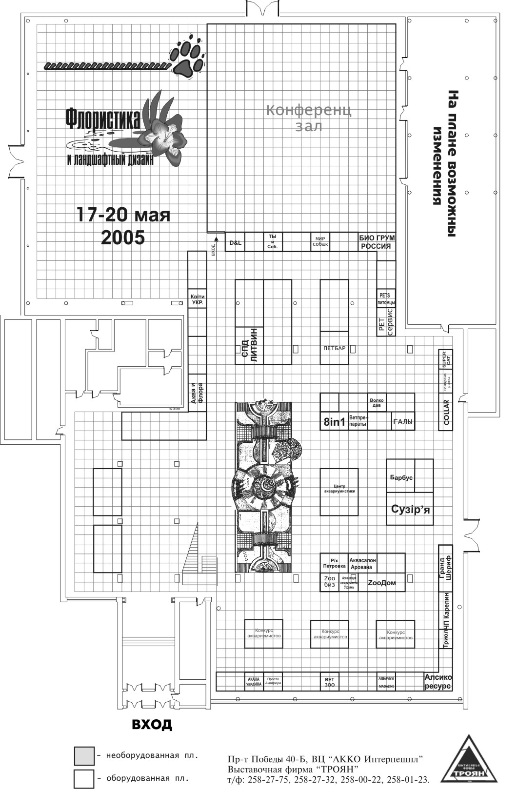 Место проведения: Украина, Киев, Выставочный центр «АККО Интернешнл», пр-т Победы, 40-Б При поддержке: МИНИСТЕРСТВА АГРАРНОЙ ПОЛИТИКИ УКРАИНЫ. ГОСУДАРСТВЕННОГО ДЕПАРТАМЕНТА ВЕТЕРИНАРНОЙ МЕДИЦИНЫ. АССОЦИАЦИИ СПЕЦИАЛИСТОВ ВЕТЕРИНАРНОЙ МЕДИЦИНЫ УКРАИНЫ. ВСЕУКРАИНСКОЙ АССОЦИАЦИИ АКВАРИУМИСТОВ. УВАЖАЕМЫЕ КОЛЛЕГИ! Приглашаем Вас принять участие в международной специализированной выставке «ЗооВетЭкспо-2005». Целью выставки является ознакомление с последними разработками в области ветеринарии и ветеринарной фармакологии, расширение ассортимента кормов и товаров для животных на рынке Украины, установление новых деловых контактов и укрепление взаимовыгодного сотрудничества между предприятиями и организациями. ТЕМАТИЧЕСКИЕ РАЗДЕЛЫ САЙТА: Ветеринарные клиники и лаборатории Ветеринарные препараты Оборудование и инструменты для ветеринарных клиник Профессиональные и любительские общественные объединения, ассоциации Оборудование для питомников, зоопарков Аквариумы, террариумы и инсектариумы Корма, комбикорма и кормовые добаки для домашних животных, птиц и рыб Средства по уходу и содержанию домашних животных Аксессуары для домашних животных Сервис и услуги для домашних животных: гостиничные центры, брачные агентства, салоны-парикмахерские, ателье, ритуальные услуги Пчеловодство Научно-исследовательские разработки зоотехнии и ветеринарии Системы государственного контроля, стандартизации и сертификации Специализированная литература В РАМКАХ ВЫСТАВКИ: Международная специализированная выставка "Флористика и ладшафтный дизайн - 2005" Специализированный тематический раздел "Современная аквариумистика" - Аквариумные рыбы; - Декоративные водные растения; - Аквариумные животные; - Аквариумы и оборудование; - Фито-зоодизайн; - Сопутствующие товары. Зооярмарка Информационная поддержка выставки осуществляется журналами Украины: «Zoo Бизнес», «VetZooProfy», «Pets Питомцы», «Мир собак», «Ты и собака», «Твоё собачье дело», «Просто аквариум», «Дистрибуция и логистика». журналами России: «Зообизнес в России», «Аквариум Магазин». газетами Украины: «Волкодав». Дополнительную информацию можно получить: 03022, Киев-22, а/я 54, Выставочная фирма “ТРОЯН”, Тел./факсы: (044) 258-01-23, 258-27-75, 258-27-32, 258-02-37, 258-00-22 Е-mail: info@troyan.kiev.ua По вопросам решения всевозможных проблем можете обращаться ко мне по тел: 8-067-419-64-34 Уже сегодня мест для экспозиции становится все меньше. В выставке принимают участие ведущие компании зооиндустрии Украины. Хоббисты и профессионалы смогут пообщаться с Вячеславом Юдаковым и Андреем Клочковым, которые будут представлять свой журнал Аквариум Магазин. В рамках выставки пройдет серия семинаров на аквариумную тематику. Так же будет проходить конкурс Аранжировки аквариумов. Прием заявок участников для участия в конкурсе и правила будут опубликованы в ближайшие дни. Могу только сказать, что каждый из 10 участников конкурса получит кроме призов и дипломов очень дорогой и ценный для аквариумиста подарок. Так что все желающие, готовьтесь. Обратите внимание: выставка смещена на неделю раньше чем указывалось. Она пройдет с 17 по 20 мая всвязи с ремонтом трубопровода в районе проведения выставки. Но самое неприятное заключается в том, что с 12 по 30 мая всвязи с Евровидением гостиницы подняли цены в 2 раза. Мы сейчас активно работаем над вопросом рассе