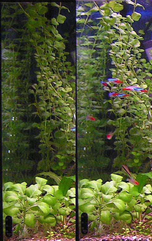 2Диз - Отражатели у тебя стоят, особенно у торцевых ламп? Я сам как раз думаю над освещением такой же банки. Есть лампы Т8 на 1040мм. и Т5 на 1163мм. Еще варинт - ставить 1200мм, но немного по диогонали, что бы влезли. Но тебе наверно не с руки будет весь свет менять.