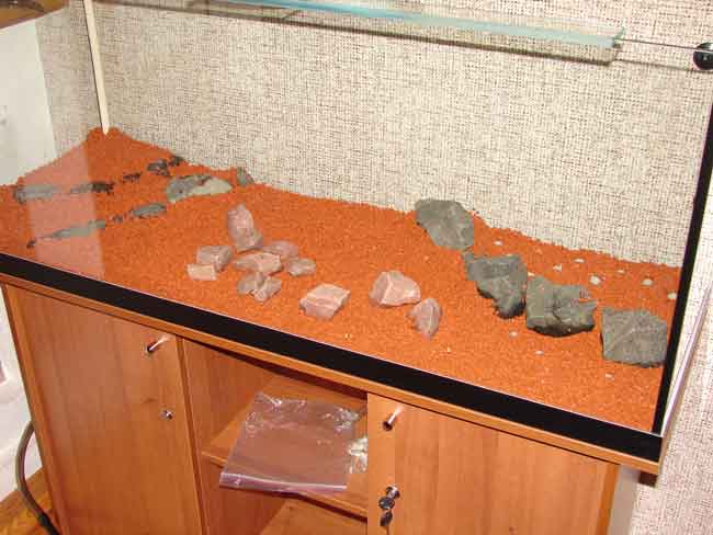 С канистрой и УФ лампой разобрался. Недождался доставки от Арованы, хотелось в выходные запустить аквариум, купил в Киеве ресуновский уголь (на всякий случай) и кольца. Кстати вышло даже немного ндешевле чем у Арованы. Уголь в упаковке по 300 гр, кольца по 250 - 8 упаковок. Можно было конечно взять и 10, место еще оставалось. Кстати, все старался купить большую расфасовку, они дешевле чем набирать малыми. но как оказалось - есть свои плюсы. Кольца шли упакованые в сетчатые мешочки, и заполнить объем лотка большой упаковкой несколько сложнее - через лоток проходит вертикальная стойка для подачи воды вниз, одним мешком было бы сложно обложить ее. Хотя бы два надо. Вобщем для 1200 канистры, на один лоток, оптимально по цене и удобству - 2 упаковки по 500 гр. и одна на 250. Канистра наполена следующим образом. Нижний лоток - два слоя поролона, и слой синтопона (один комлект для мех. очистки был с канистрой, второй докупил у Арованы) потом два лотка с кольцами - 8 упаковок по 250 гр. В верхнем лотке сверху - второй вкладыш из синтапона, в самый нижний, с механикой, он не помещался, и слава Богу - он там лишний, а после колец - самое оно, хоть кольца и промывал, но со временем может что то будет отслаиватся от колец, а так насос защищен. http://www.aquaforum.kiev.ua/forum/a...1&d=1150446953 http://www.aquaforum.kiev.ua/forum/a...1&d=1150446953 Все прокладки смазал вазелином, собрал. Набрал ведро воды, стал закачивать в канистру. Упс, надо было перед сборкой залить ее по максимуму в канистру, но как то закрутился, пришлось вливать через шланги. Более менее наполнил, потом еще минут 30 выгонял воздух из труб, канистры и стерилизатора. Признаться, встроеный ручной насос не сильно в этом помог. Вот не понимаю, почему во всех натрубных фильтрах для воды есть винтик, для выпуска воздуха, а в канистрах его нет. Неужели так сложно производителю сделать в крышке небольшой "колокол" и от него выход под винт, стравливать воздух. А так пришлось трусить канистру, рискуя или вырвать шланги, или своротить УФстерилизатор. Пляски увенчались успехом, все заработало. Вот только канистру реально слышно. Хоть в комнате и не живет никто, но надо будет что то делать, или паралон-пенопласт под ножки, хоть они и резиновые, или саму канистру паралоном обернуть. Посмотрим. Далее приступил к засыпке грунта, укладке камней для терас. Грунт "теннисист", фракция №3. Частицы грунта в основном 3-6мм, но естественно встречаются и больше и меньше. С особо мелкими боролся при помощи сита для муки. В хозмаге купил сито, долго гонялся но все же нашел, а-ля СССР - деревянный каркас и мелкая сетка на дне. Как то они помельчали в размерах за последние 15 лет... ;-) забрал последнюю, стоила 2,50 грн. Грунт в мешке был сырой, не смотря на то что мешок был запаяный. Высыпать сушить его мне было лень - некуда, да и продувать его несколько более муторно чем промывать. В сито насыпал грунт слоем в 1-1,5 см, и со шланга через рассеиватель промывал, пока вода не станет прозрачной стекать. После чего ссыпал в таз, когда в тазу собрался слой в 2-3см - промывал струей в тазу - что бы избавится от плавучих частиц. Вобщем целого мешка мне хватило полностью еще и осталось немного. (кому надо - есть второй вакантный мешок, за 60 грн) Подпорные камни навыбирал из кучи, что осталась после создания альпийской горки. Нашел розовые и черные камни, хотелось базальт, но видимо достался черный гранит. Промыл их от зем