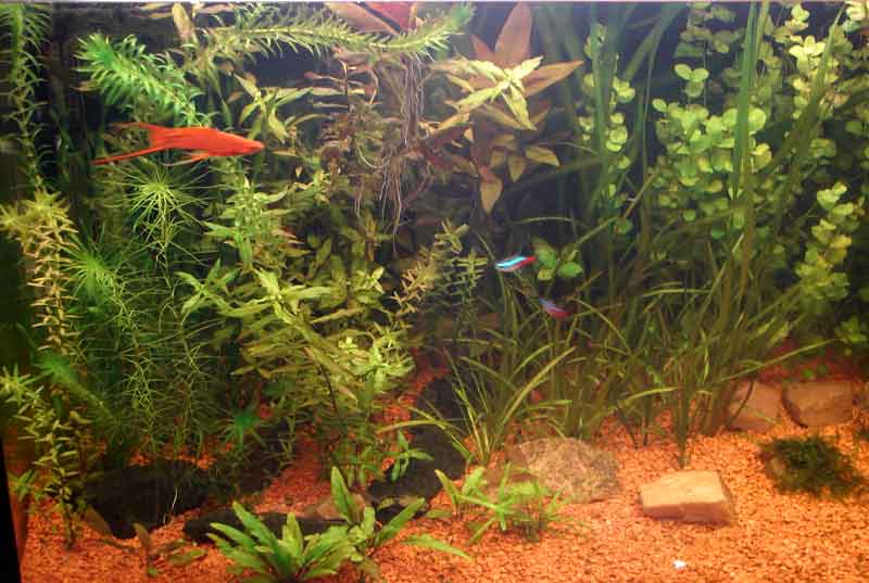Пересадил рыбную мелочь - неоны, 4 мечиносца и 3 огненых барбуса. Гурамов прийдется со скаляриями попозже. Скалярии вообще лечется, а гурами... Мечиносиха дала приплод, теперь сверху гоняет десятка 2-3 мелочи. Сожрут их гурами, жалко.