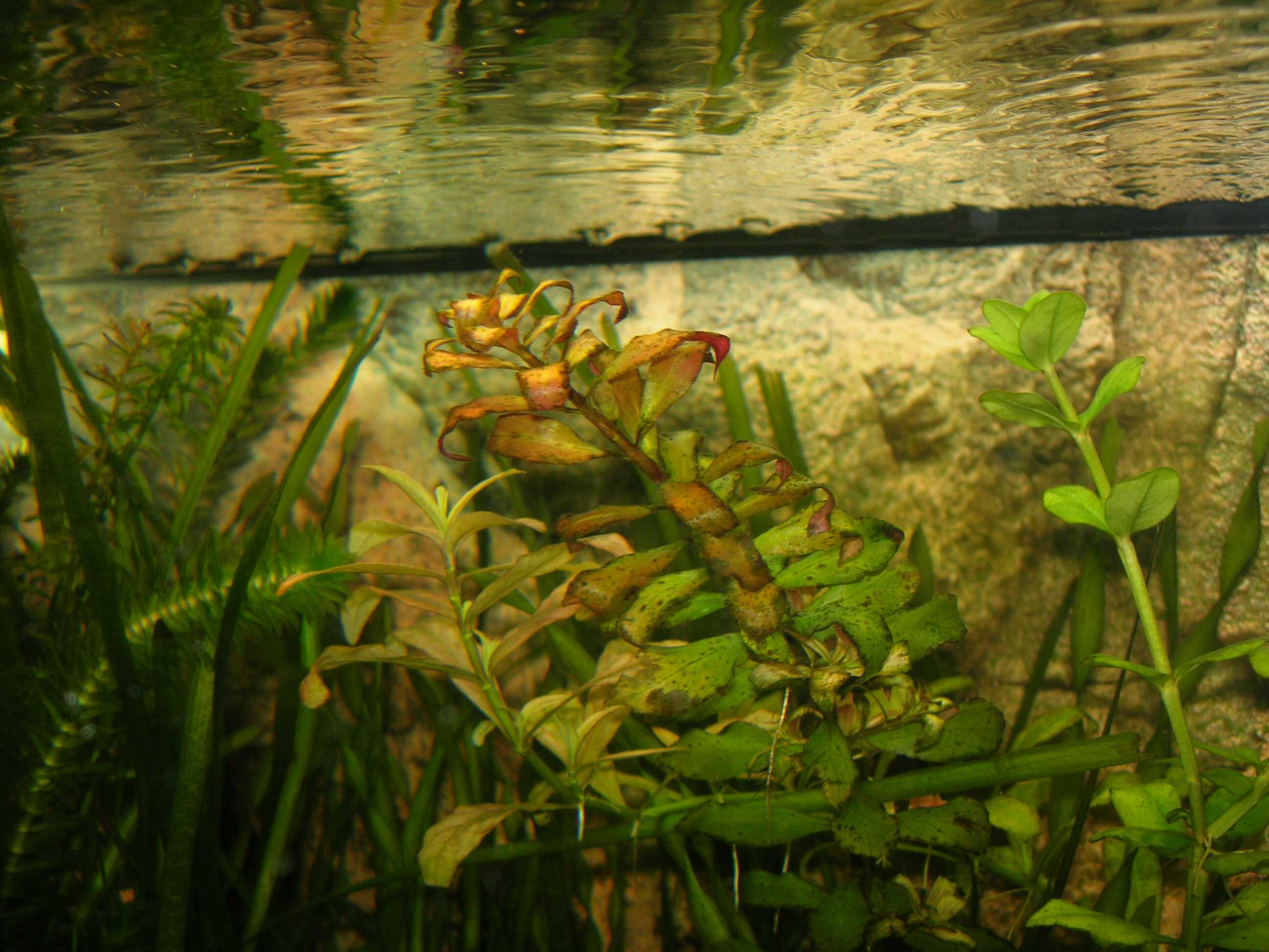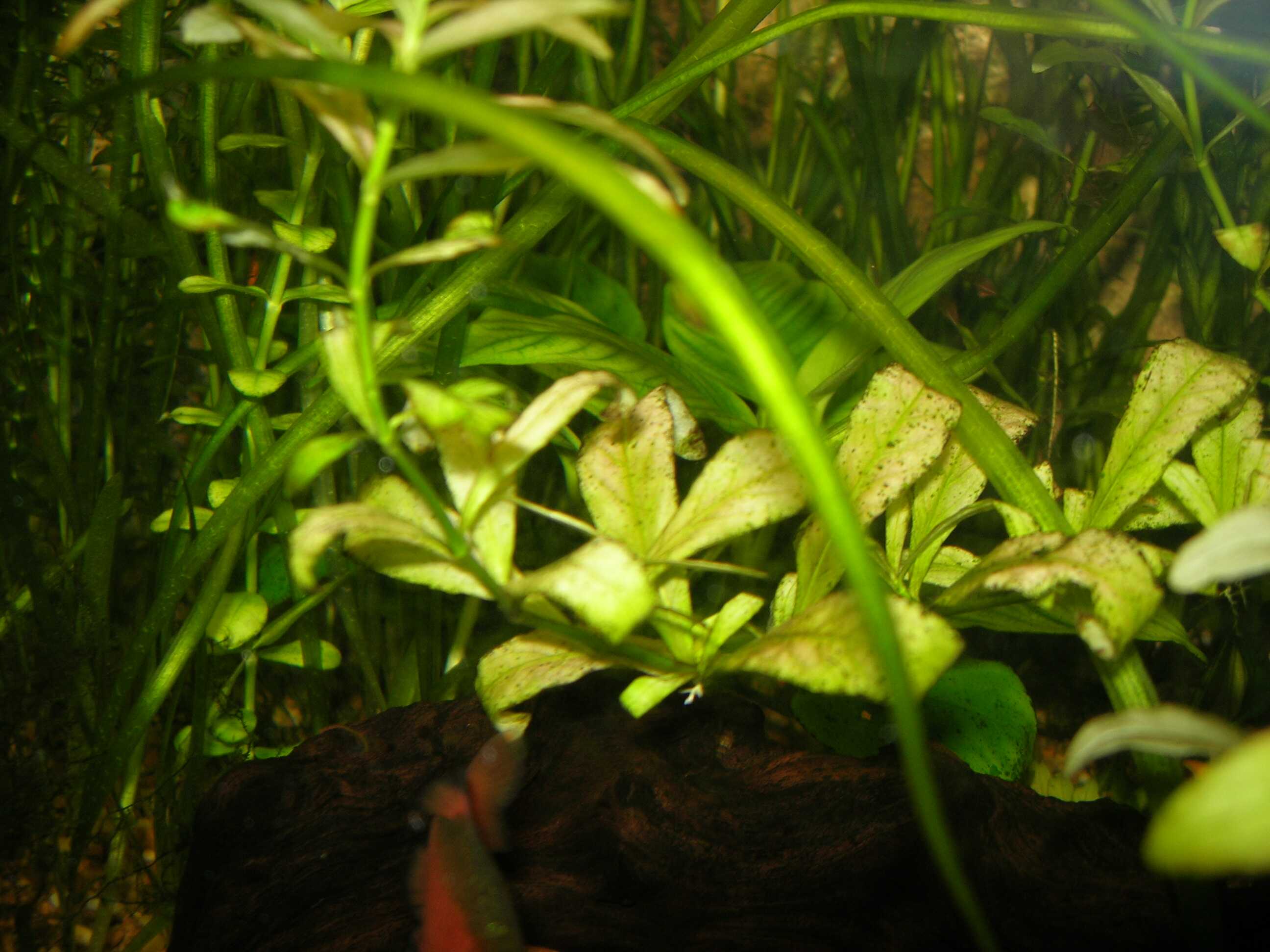 что бы я сделал в таком случае: свет, 2 х 18 на 125 теоретических литров, мало, для того что бы рыбу подсветить нормально но для растений мало, и особенно для альтернатеры. где то в сети (прошу прощения что не могу ссылку дать) встречал описаловку симптомов растений когда какого - елемента не хватает, но на первый взгляд мало Fe. так что больному поможет комплексное лечение, свет, умереное питание - без фанатизма, и не помешает СО2 добавить, что бы все в норме было. ВСЕ ИМХО: удачи