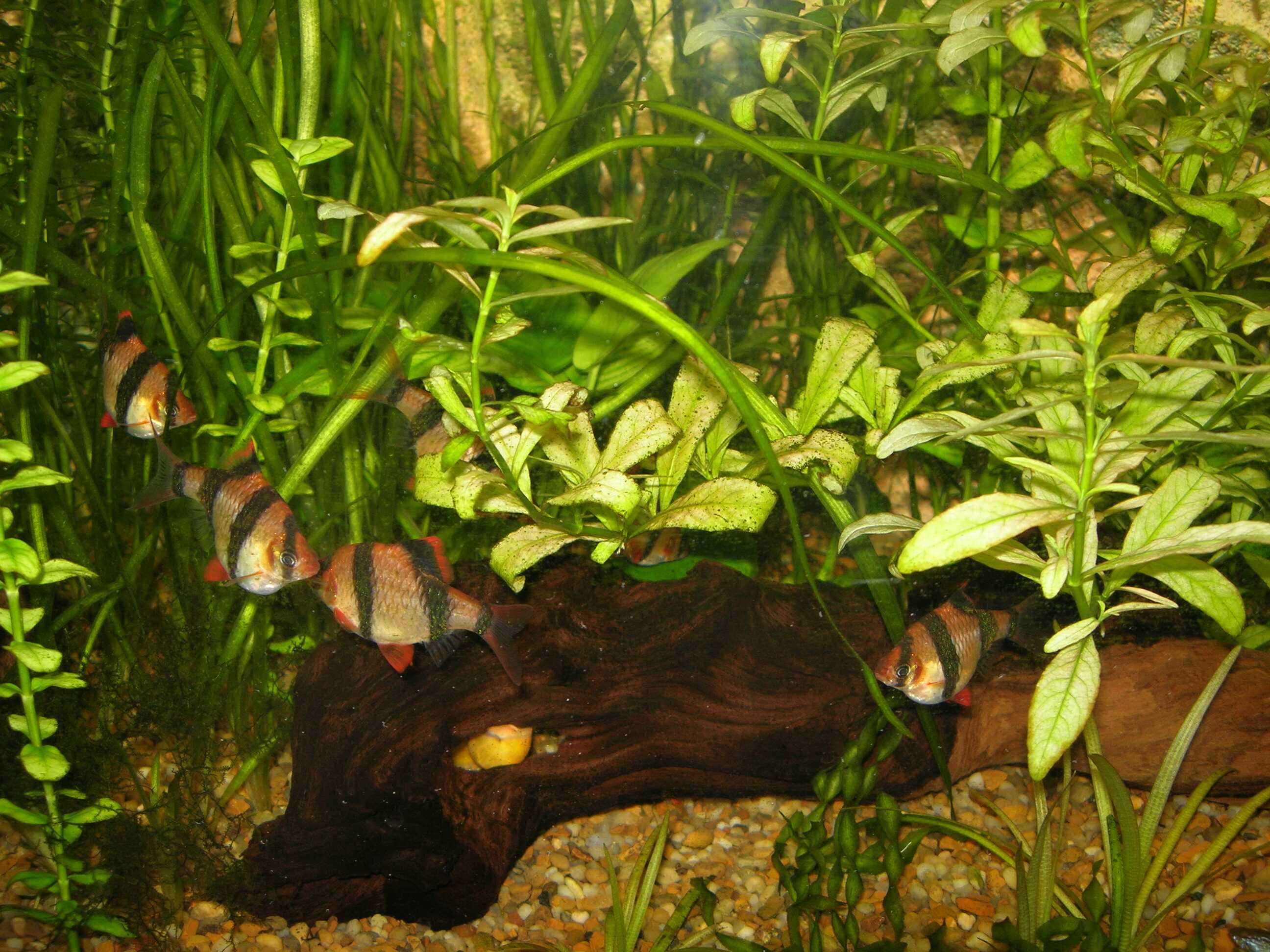 Рио 125, штатный свет + отражатели (продолжительность 12 ч.) температура воды 24-25, штатный фильтр + дождевалка. Запущен в ноябре 2005. 4-5 сантиметров грунта, фракция 3-4 мм, почти не сифонился, потому как негде сифонить, довольно плотно засажен растючкой плюс коряга Мопани. Население 4 гупа, 8 Суматранцев, 6 Огненых, два анциструса, 3 Коридораса Панда. Подмены воды через день по 12 литров. Последний раз редактировалось Nikola, 24-03-2006 в 23:22. |