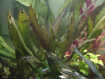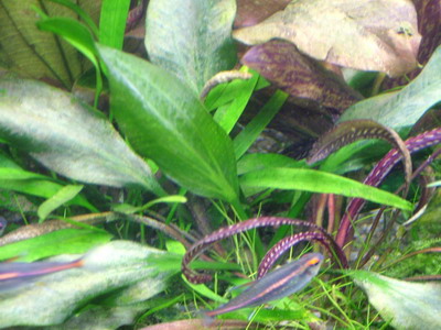 Зеленый оцелот, невысок - до 20 см. Эдакая "тучка на дне" и Грин флейм - больше красного в листе до 40 см. Дает стрелы. Чем лучше свет - тем красивее. (продолжение следует.....)