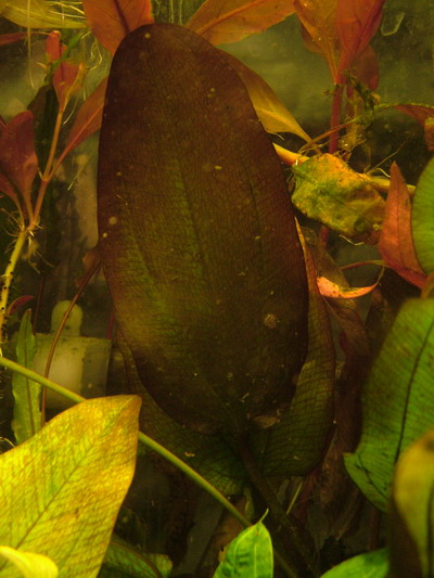 Апарт. Мой любимец. Около 15 лет. Кожистый, плотный, корневище ползет по грунту. Изумрудно зеленый, новый лист красноватый. Анциструсы(гады) жрут в последнюю очередь.