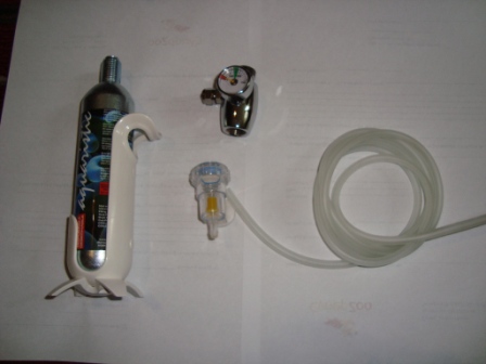 Плюс использования уже заправленных баллонов от европейских фирм - высокоочищенный СО2 без примесей машинных масел, забивающих систему и безопасный уровень давления в баллоне. Историй по поводу заправки кислородных или других баллонов силами наших умельцев на станциях углекислоты предостаточно. Особенно зимой, когда перепады температур между Вашей комнатной(20-22С)и той, которая в открытом боксе (-5-10С) приводят к тому, что газ дома у Вас начинает расширяться, срывая редуктор ну и все такое...