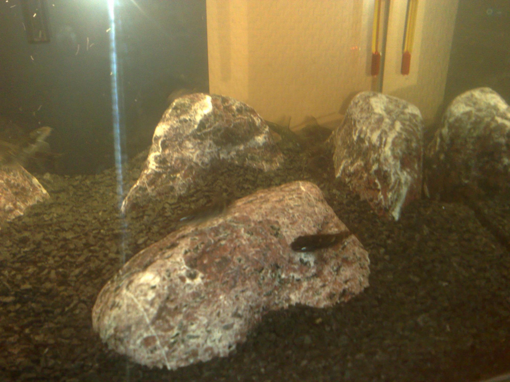 Долго выбирал цвет и фактуру, потом еще дольше раскладывал отобранные камни прямо в тележке для получения законченной композиции. Продавец изредка подходил, спрашивал, нужна ли помощь и, получив очередной отрицательный ответ, удалялся… Еще бы, взрослый дядька с бородой и в пальто играется "в пасочки" весь перепачканный пылью (камни довольно пыльные, рекомендую иметь влажные салфетки, чтобы руки протирать да и камни, чтобы увидеть их фактуру в мокром виде) просидел в его отделе около часа. В конце концов, композиция оформлена, куплена и отвезена домой. После тщательного мытья и кипячения камни помещены в аквариум.