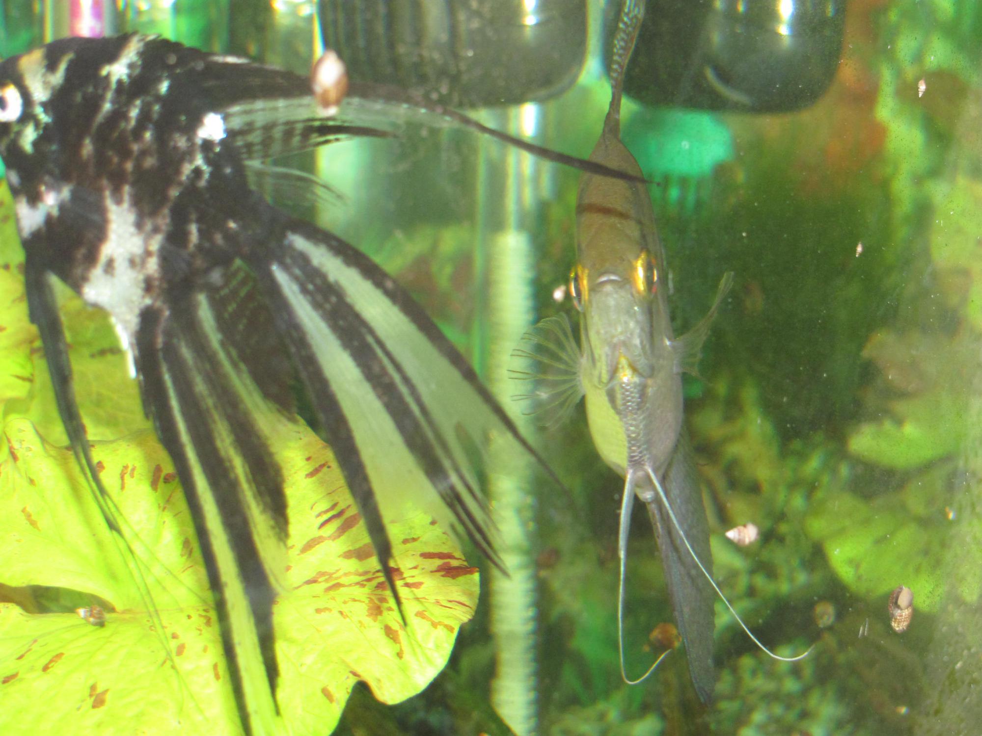 я всеже склоняюсь что это болезнь так как эта пара самые большие и самые старые обитателив (акве 450 л при населении 30 гдето неонов красных ,20-30 родостомусов и 5 скалярок подростков + присоски и таракатумы) остальные подростки и воевать врятли ктото против них осмелится хотя одна самочка (подросток) уже пытается нереститься и липнет к самцу , а он в свою очередь как порядочный семьянин прогоняет со своей территории, а его портнеша 0 внимания на конкурентку пока что , а вообще в недалеком прошлом забила конкурентку (ровесницу) до полусмерти