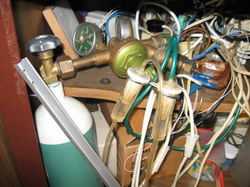 Бело-зеленый баллон(4литра) - лабораторный сейчас пустой, а химзавод вроде как прикрыли. На нем редуктор с игольчатым клапаном. Серый - медицинский на 10 литров с аналогичным редуктором. Также фото синего электромагнитного клапана от автомобиля и тороидального трансформатора ( для питания клапана) На зеленом баллоне присобачено два счетчика пузырьков из капельниц. И фото реактора. _ перевернытый колокол, а в него внизу заведен "выхлоп помпы".