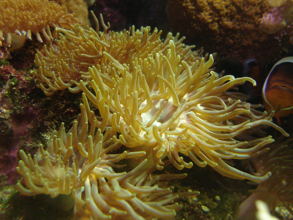 Это майано,закадычный кореш аиптазии.Оба относятся к актиниям-сорнякам.Аиптазию хоть хелмон может уничтожить,а эту х.з.может вундермани,хотя ИМХО нет сведений,вобще-то Славик,а раньше почему меры не принимал?Майно,не любит физических на него воздействий,в отличие от аиптазии,умирает,если его начать рвать.Но это можно,когда их мало,а сейчас начни долбать-отравят все.Тут нужно вытащить все камни,на которых они сидят,и обработать их вручную и промыть морской водой,потом выставить снова,и следить,чтобы снова не появлялись.Гемора хватит,но других способов не вижу,тут же важно аквариум не положить....Хотя вобще-то красиво,бляха-муха....