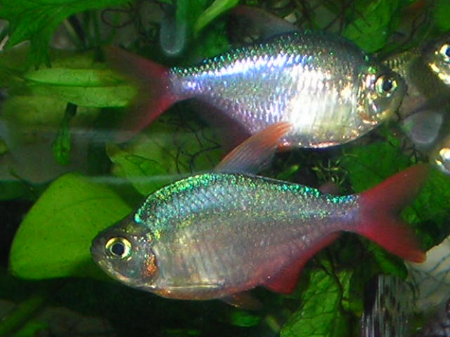 кирпичВы сравниваете два разных вида рыб, которые относятся к разным семействам. На первом снимке- Sawbwa resplendens. Этот вид относится к семейству Карповых. На снимке самец. Самка у этого вида невзрачная. В Харькове у нас ее разводили. На втором снимке- вид который можно смело отнести к семейству Харацидовые, так как у этого вида присутствует жировой плавник. Если бы не интенсивно голубой цвет она бы очень была похожа на Колумбийскую тетру ( Hyphessobrycon columbianus ). Вот мои фото Колумбийской тетры.